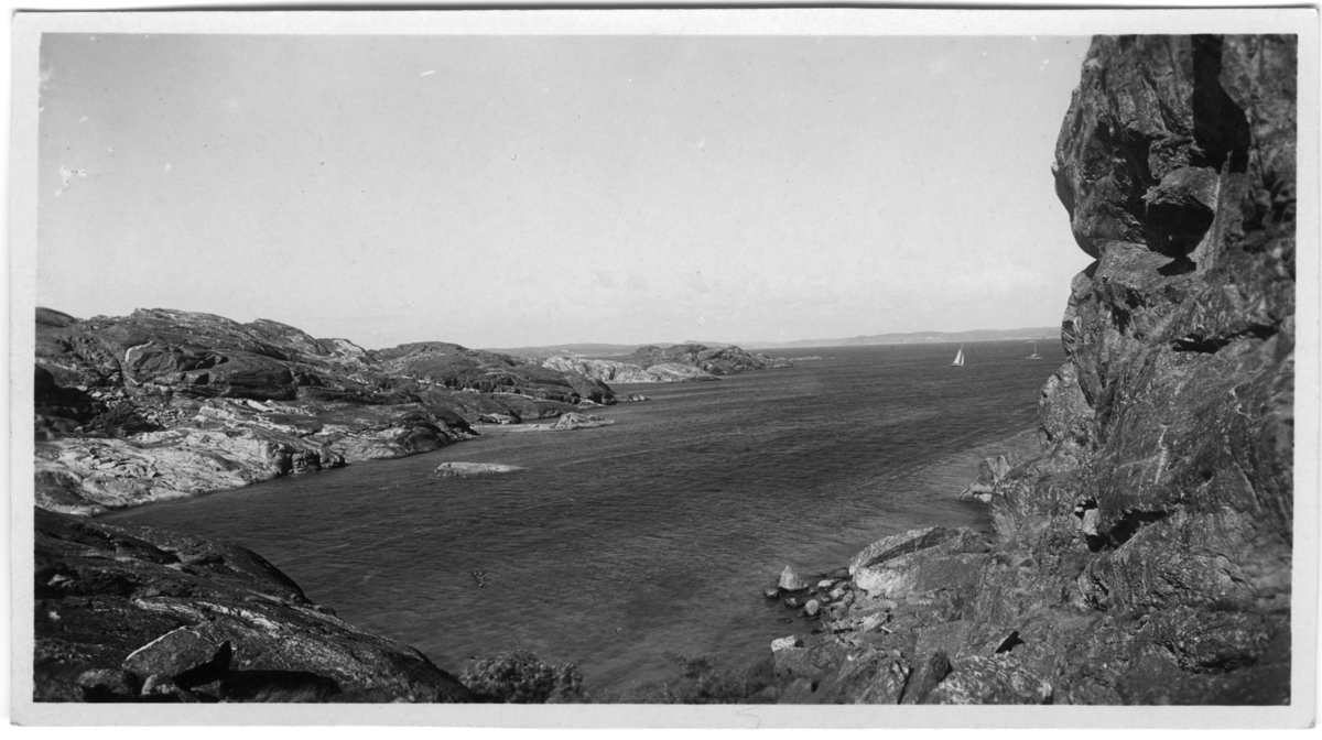 'Utsikt över Smalsund åt N.O. Kungsklippan t. h. segelbåtar på havet. :: :: Serie fotonr 1888-1963.'