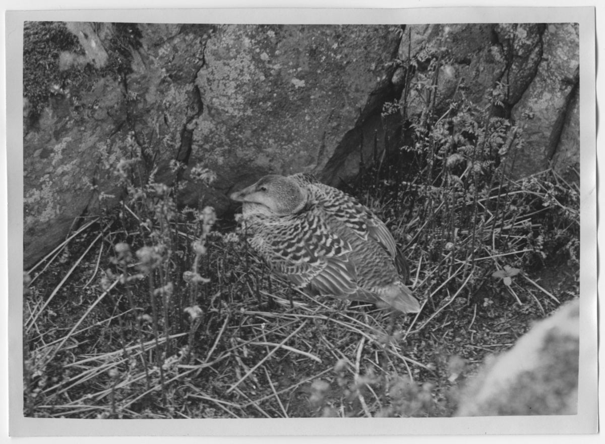 'Ejder invid bergvägg. Sedd snett bakifrån. Närbild. :: :: Ingår i serie med fotonr. 2462-2487.'