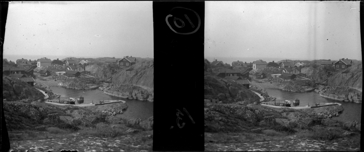 'Bildtext: ''Landsort: eastern harbour.'' (Östra hamnen) :: Vy över hamnen med pir och brygga i förgrunden, vy med hus och båtar. :: :: Ingår i serie med fotonr. 5249:1-20, se även hela serien med fotonr. 5237-5267.'