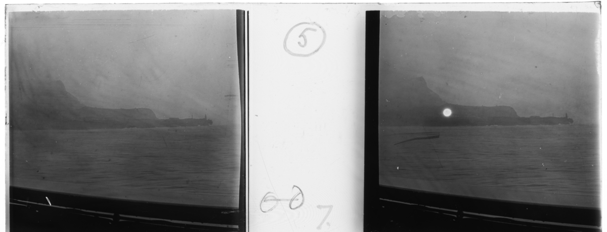 'Vy in mot land från havet. :: Enligt text till fotot: ''Gibraltar, from the Mediterranean.'' (Gibraltar sedd från medelhavet.) :: :: Ingår i serie med fotonr. 5243:1-16, se även hela serien med fotonr. 5237-5267.'