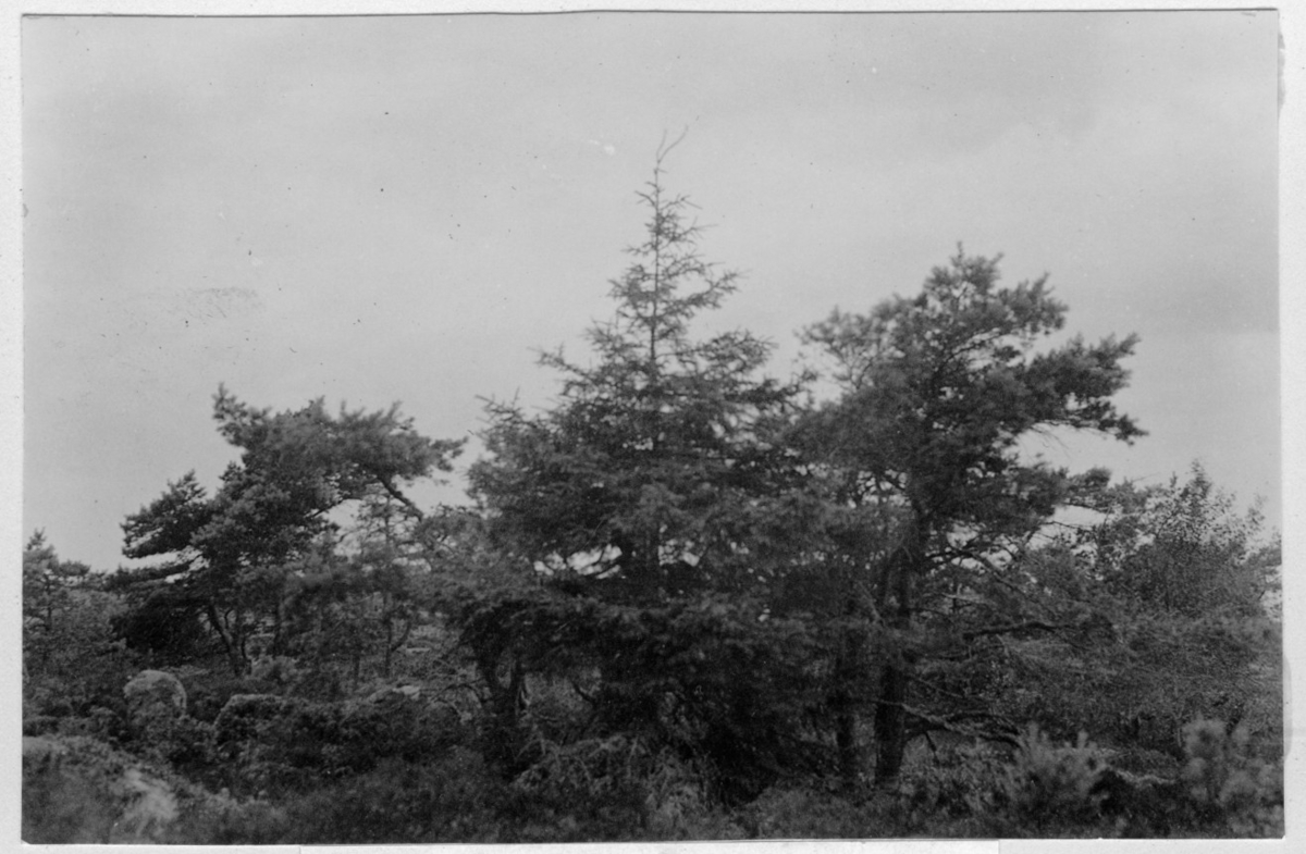 'Bildtext: ''Spontan gran och tall.'' Närbild på lägre granar och tallar. :: :: Fotonr. 7046:234-275 indelade som ''Naturskogsbestånd i Göteborgs län och Bohus län''. Ingår i serie med fotonr. 7046:1-383, 7047:1-33 och 7048:1-67 med bilder från Länsjägmästare John Lindners bildarkiv.'