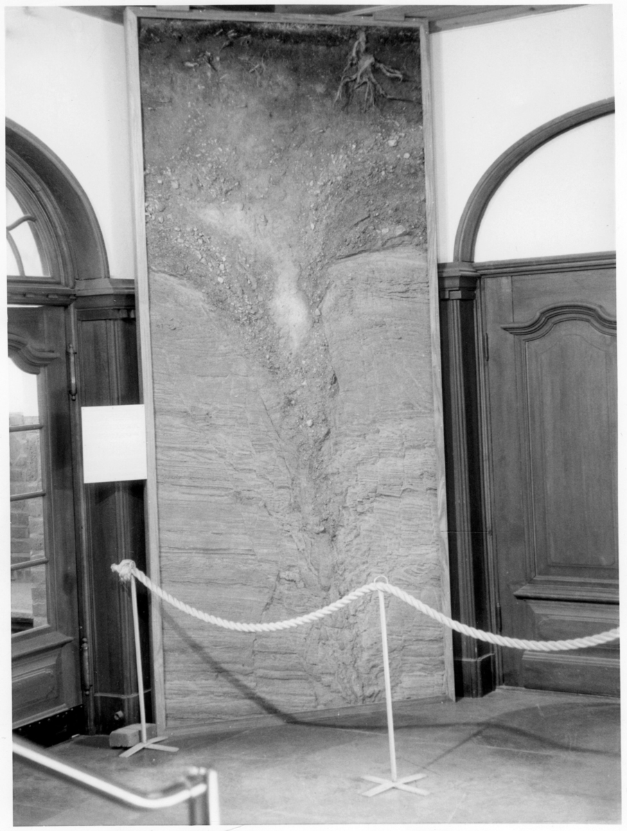 'Iskil (lackprofil) utställd på Göteborgs Naturhistoriska Museum (2007). Dörr ut mot innergården till vänster. :: :: Ingår i serie med fotonr. 7061:1-14. Serien består av material från Åke Hillefors (inkommet 2004).'