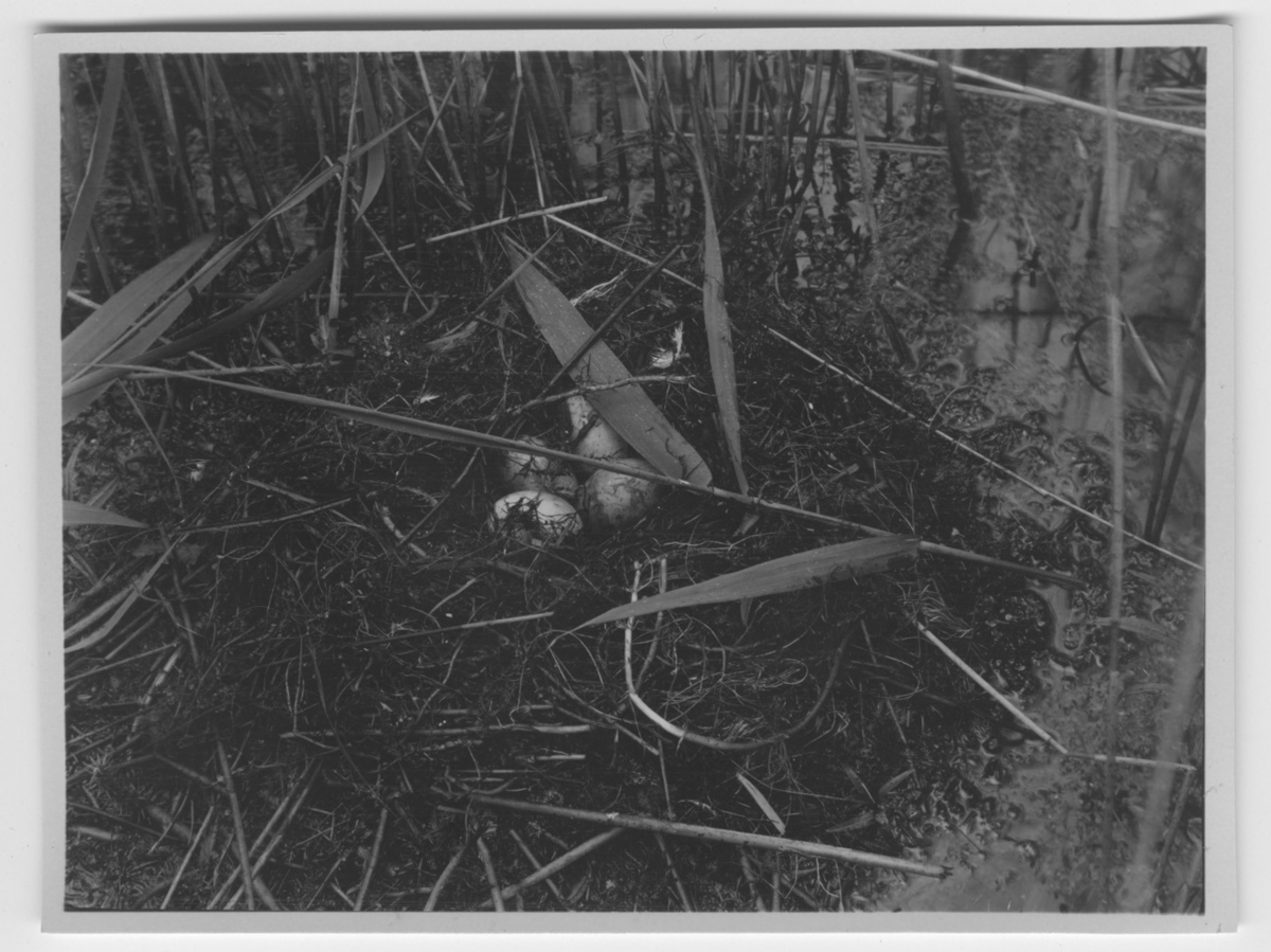 'Skäggdoppingbo med ca 4 ägg. :: :: Se serie med fotonr. 1258-1304.'