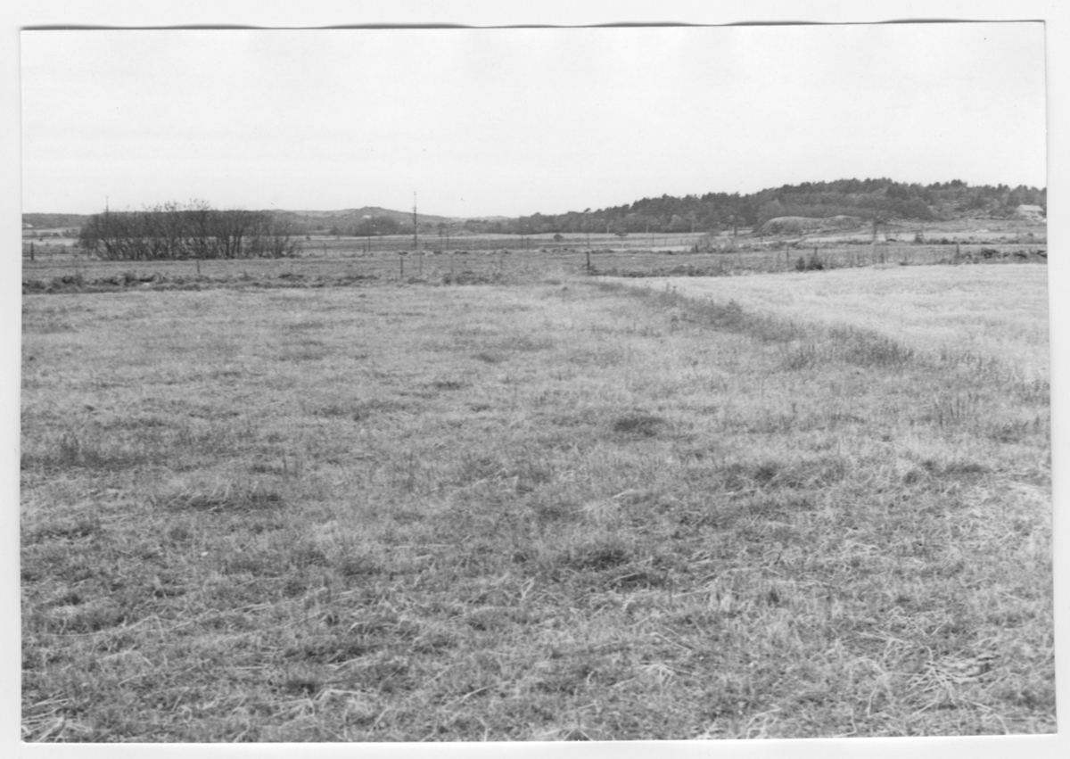 'Bildtext: ''Sedimentyta. Riktning 224.'' :: :: Ingår i serie med fotonr. 6970:1-1125, dokumentation av Hisingens naturgeografi, visande landskapsformerna i stora drag och gjord inför exploateringen av området. Platserna för fotograferingen finns utsatta på karta i skala 1:4000 som finns på Göteborgs Naturhistoriska musem. Fotoriktningen mättes med kompass i gammalgrader.'