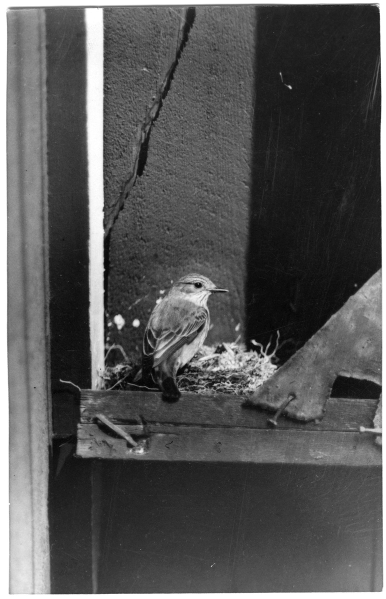 'Flugsnappare vid bokanten. Boet i en byggnad? :: :: Ingår i serie med fotonr. 1709-1724.'