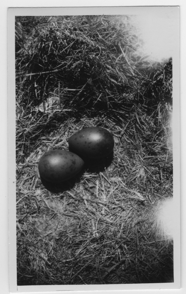 'Labbens bo med 2 st ägg på en grästuva högst uppe på Lindholmen. :: :: Ingår i serie med fotonr. 4500:1-172.'