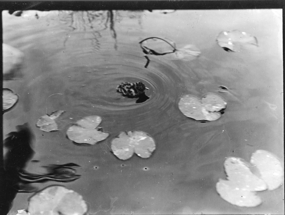 'Skrattmåsunge i vatten. Näckrosblad. :: :: Ingår i serie med fotonr. 565-585.'