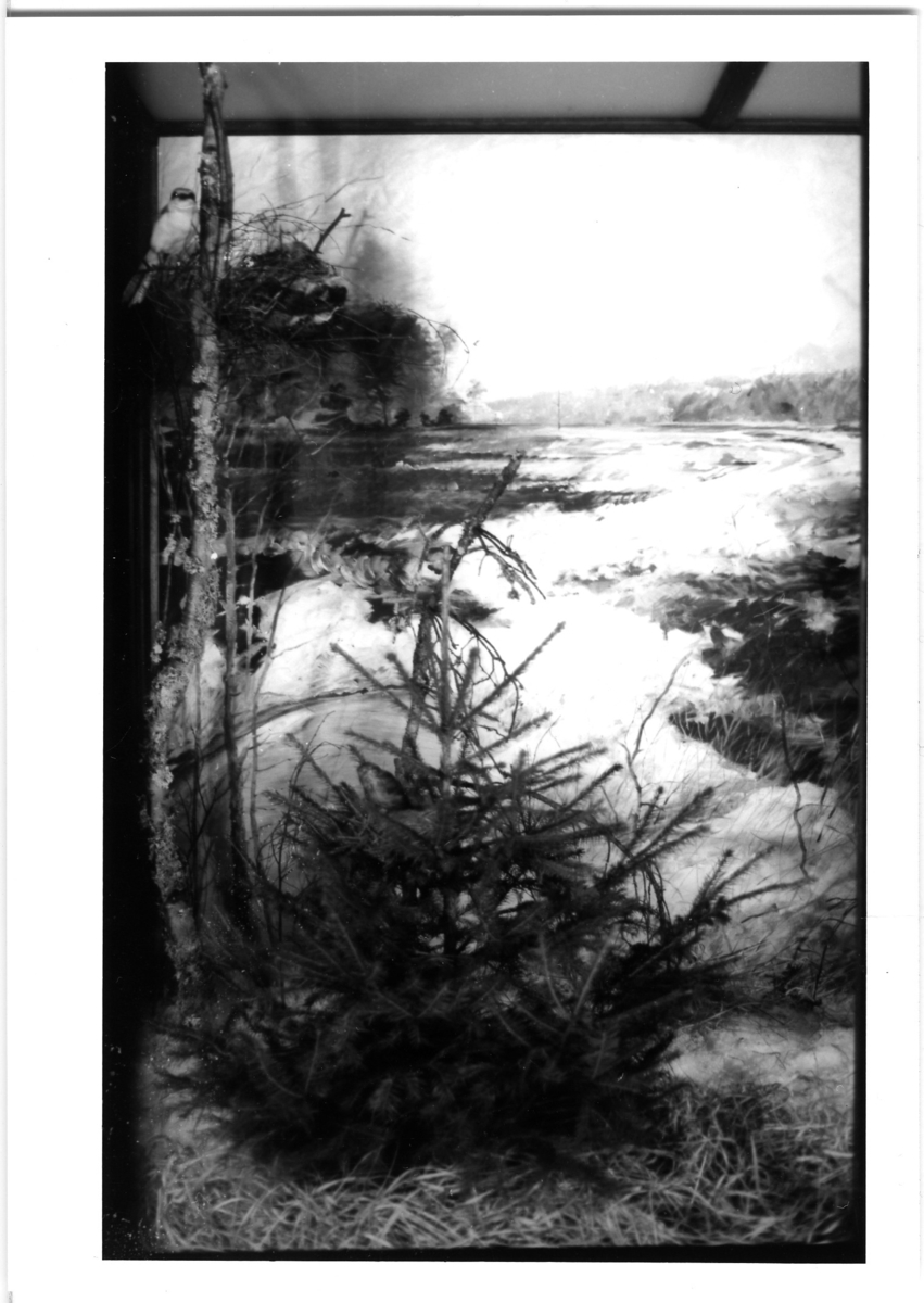 'Fågelmontern med Göran Dalhovs bakgrundsmålning på Göteborgs Naturhistoriska museum :: :: Ingår i serie med fotonr. 6764:1-39.'