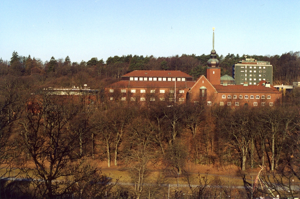 'Exteriörbild av Göteborgs Naturhistoriska Museum. Byggnaden fotograferad från höjd ovan Linnéplatsen, från Annedalskyrkans håll. :: :: Ingår i serie med fotonr. 6065:1-12 med vyer med Göteborgs Naturhistoriska museum.'