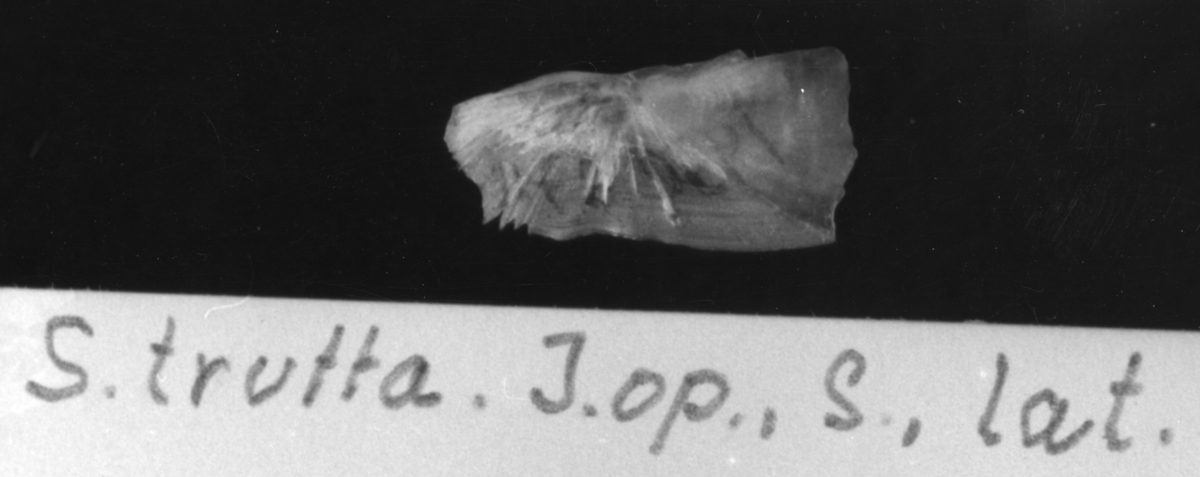 'S. trutta. J. op., s., lat. :: Salmo trutta Interoperculum, sinister, lateralt) :: :: Ingår i serie med fotonr. 7094:1-48'
