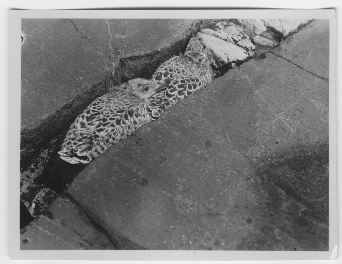 '2 unga havstrutar trycker i klippskreva. Närbild, sedda ovaifrån. :: :: Ingår i serie med fotonr. 1771-1837. Se även fotonr. 3151-3200.'