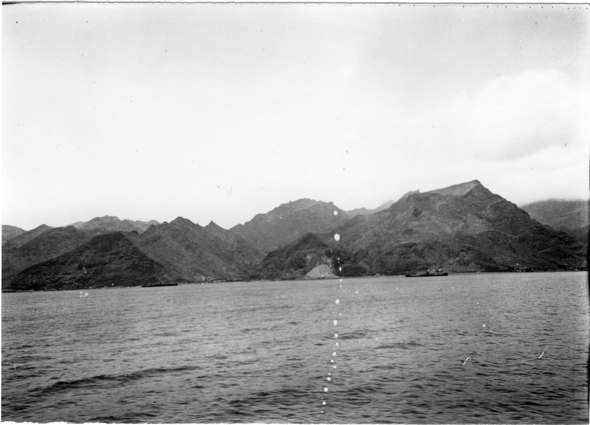 'Diverse fotografier från bl.a. dåvarande Nordrhodesia, nu Zambia, tagna av Konsul Magnus Leijer. :: :: Vy över bergslandskap med flera toppar synliga. Vatten i förgrunden.'