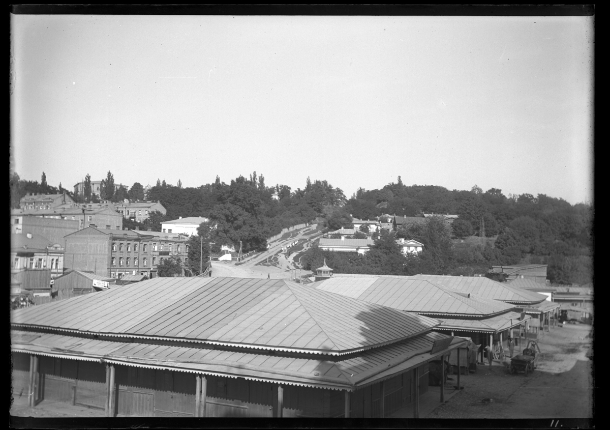 'Vy över hustak och stad. Gata med häst och vagn. På avstånd syns människor gå uppför en backe. :: :: Ingår i serie med fotonr. 5274:1-22. Se även fotonr. 5269-5292 med bilder från Stuxbergs resa till Kaukasien.'