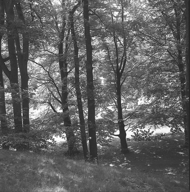 Titel: 'Ekbacken och en bild på stora blocken utanför entrén. :: :: Vy över ekbacken.'