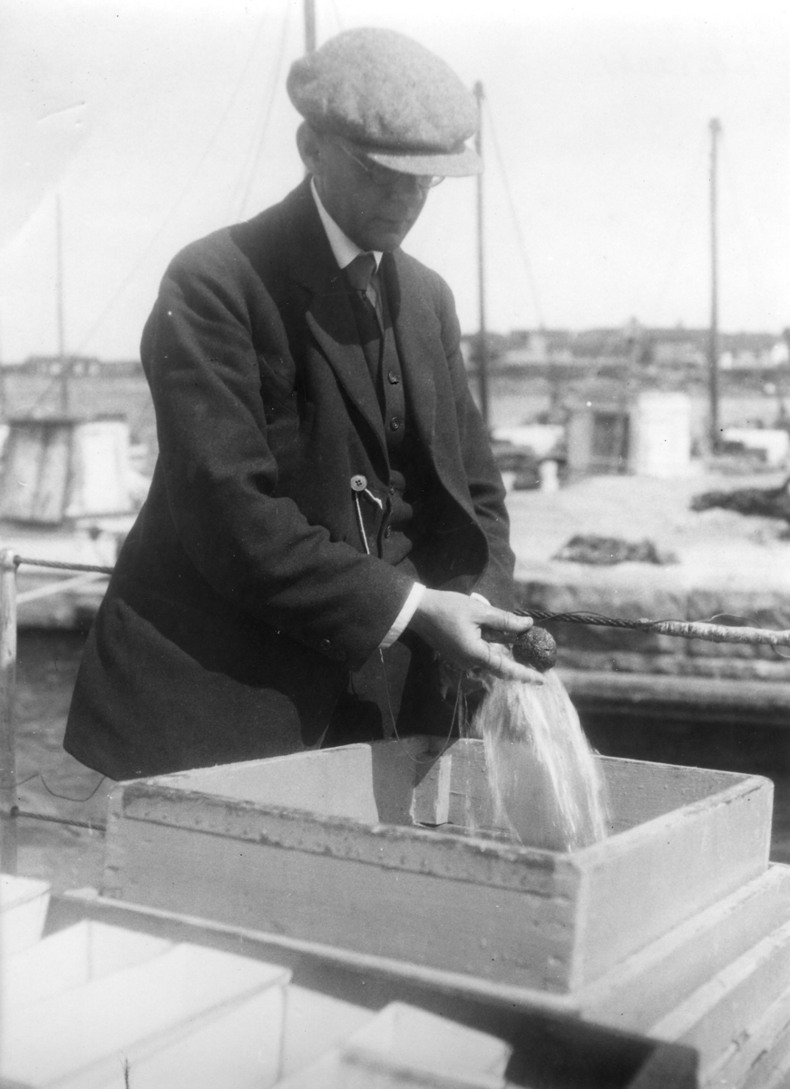 'Akka-expeditionen sommaren 1930: :: :: Adjunkt Anders Wastensson / Anders Wastenson. Spolar utanför Träslöv. :: :: Ingår i serie med fotonr. 2033-2087.'