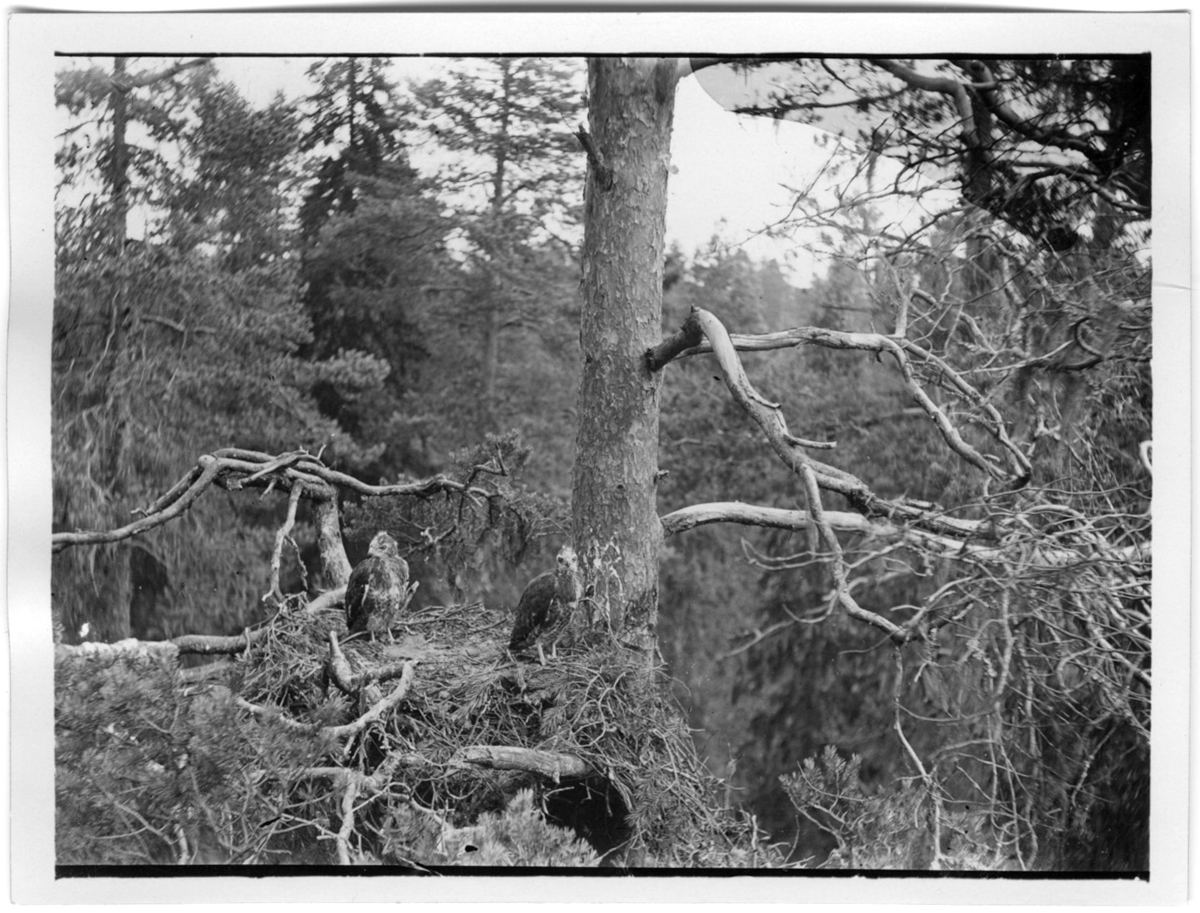 '2 ormvråkar i boet i tall. :: :: Ingår i serie med fotonr. 1873-1887. Se även fotonr. 2562.'