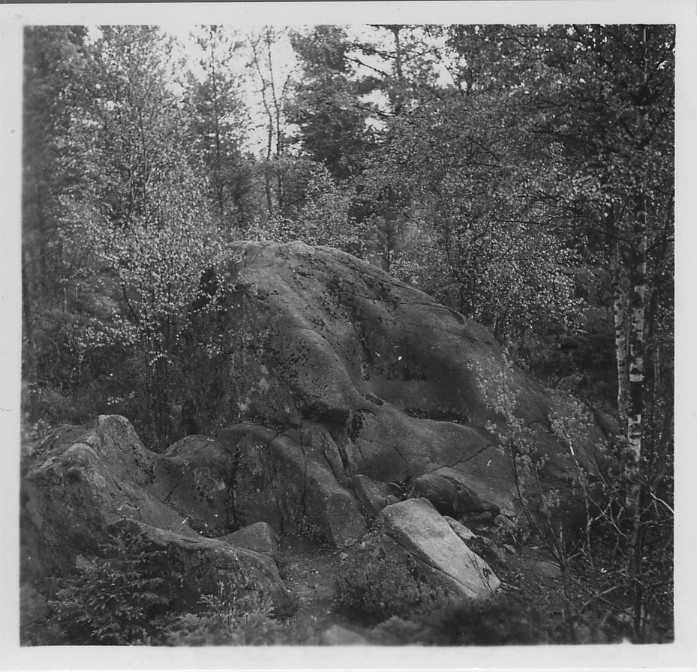 'Biologiska föreningens utfärd till Sveafallen och Villingsbergs kronopark. :: :: Stenhäll med jättegrytor, i blandskog. :: :: Se fotonr. 4226:1-34, 4228:1-3 och 4229:1-3 från samma utfärd.'