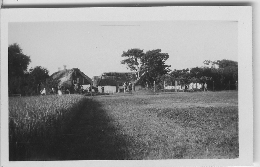 'Akkaexpedition, Bilder från Läsö och från båten (Skandia, FC51, FG51). :: :: Vy över lantbruksgård, med ett fåtal människor synliga. Fotograferat från avstånd. Åker. :: :: Ingår i serie 5089:1-63. Se även fotonr 2401-2453.'