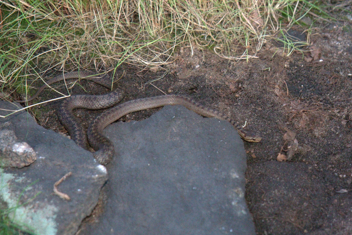 'Bilder från Rambomosse, tagna under arbete med inventering av hasselsnok vid Rambomosse och Hålsjöområdet: :: :: Hasselsnok invid stenblock. :: :: Ingår i serie med fotonr. 7075:1-42. Bilderna tagna i samband med arbetet att skriva en rapport om ''Hasselsnoken vid Rambo mosse''. Rapportens författare, Leif Lithander, Anders Nilsson och Göran Nilson, Göteborgs Naturhistoriska Museum 2007-11-27.'