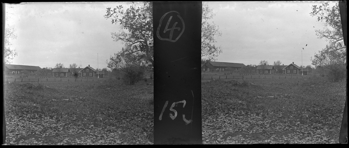 'Bildtext: ''View from back of house.'' (Vy från baksidan av huset) :: Vy med huset och lada. I förgrunden öppen gräsmark och trähägnad, staket. :: :: Ingår i serie med fotonr. 5251:1-21, se även hela serien med fotonr. 5237-5267.'