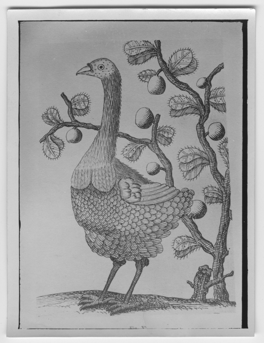'Solitärfågeln efter Légnat. Avfotograferad teckning. :: :: :: Ingår i serie med fotonr. 2984-3010, foton och teckningar på dront och garfågel bl.a.'