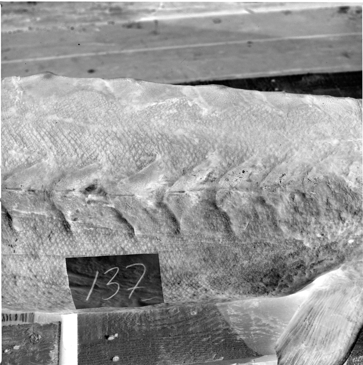 'Stör fångad i Nordsjön: :: :: Detaljbild av sidan. :: :: Ingår i serie med fotonr. 6028:1. Se även fotonr. 6029:1-12.'