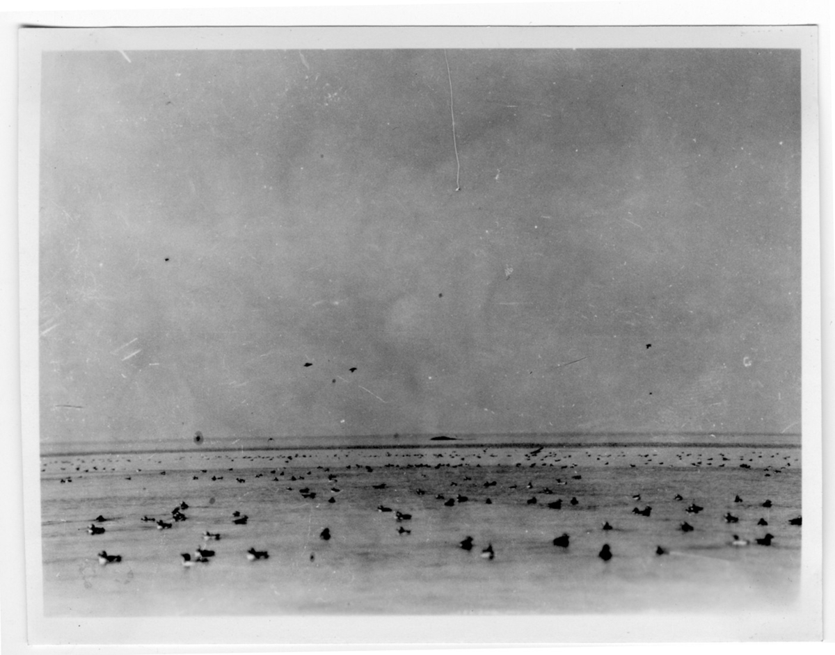 'Vy med fåglar liggande i havet. :: Text till fotot: ''Havet täckt med fåglar.'' :: :: Ingår i fotonr. 6995:1-51, dessa sitter i ett fotoalbum med tillhörande beskrivningar på norska.'