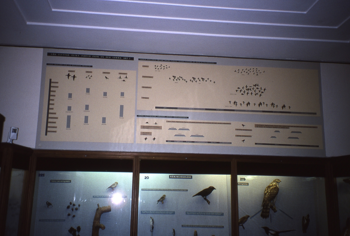 'Montrarna i fågelgången fotograferade före restaurering. :: Svenska fåglar. Flyttmönster. Flyttfåglar. :: :: Ingår i serie med fotonr. 6939:1-54.'