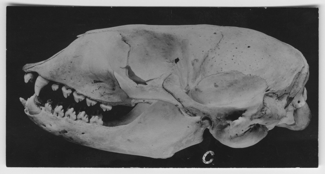 'Skalle av knubbsäl. Sedd från sidan. :: :: Ingår i serie med fotonr. 3043-3051.'