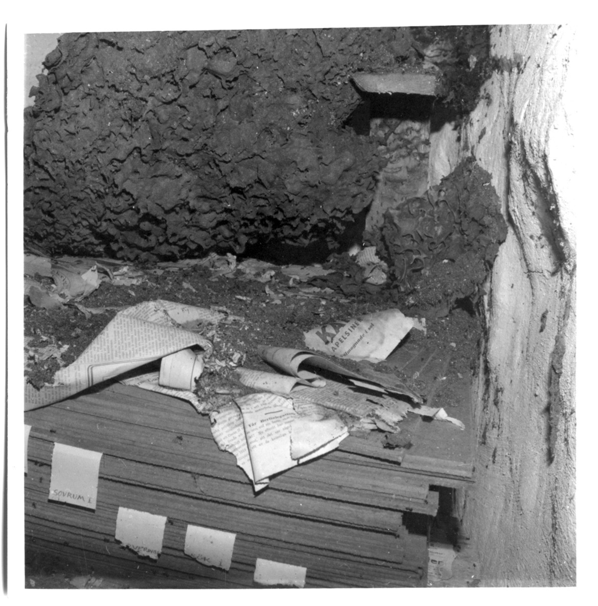 'Jättelikt bo av blanksvart trädmyra. Boet är ett pergamentsbo med storleken, 55 cm högt, bredd 55 cm, längd i horisontalplan 63 cm och vikt 6 kg. :: :: Ingår i serie med fotonr. 5086:1-9, se även fotonr. 4716-4729.'