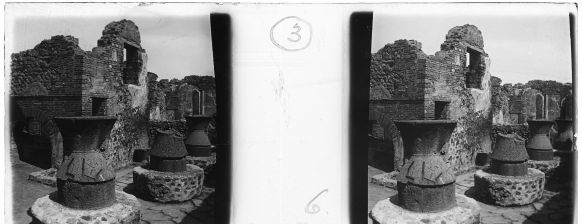 'Del av ruin ''bageri''. Ugnar. Murade väggar. :: Enligt text till fotot: ''Baker´s shop.'' (Bageri) :: :: Ingår i serie med fotonr. 5242:1-17, se även hela serien med fotonr. 5237-5267.'