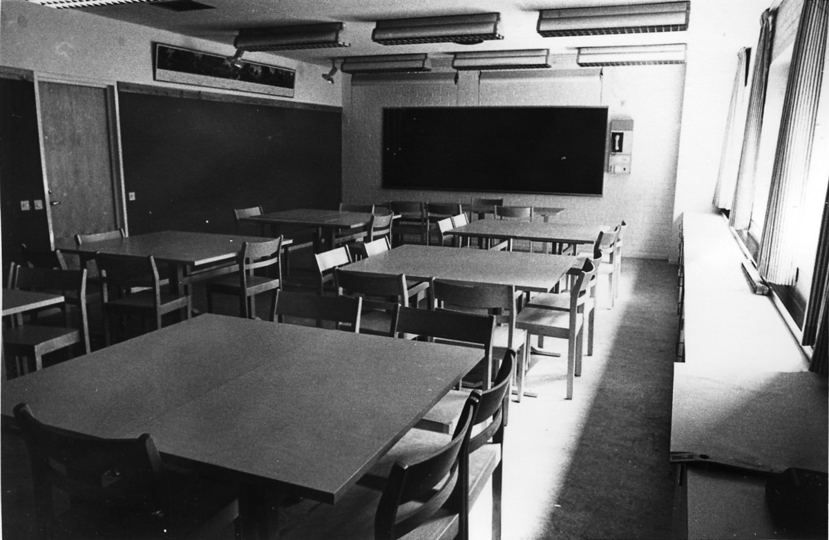 'Tillbyggnad Göteborgs Naturhistoriska Museum juli 1980. Interiör undervisninigsrum/lektionssal. :: :: Ingår i serie med fotonr. 5527:69-216.'