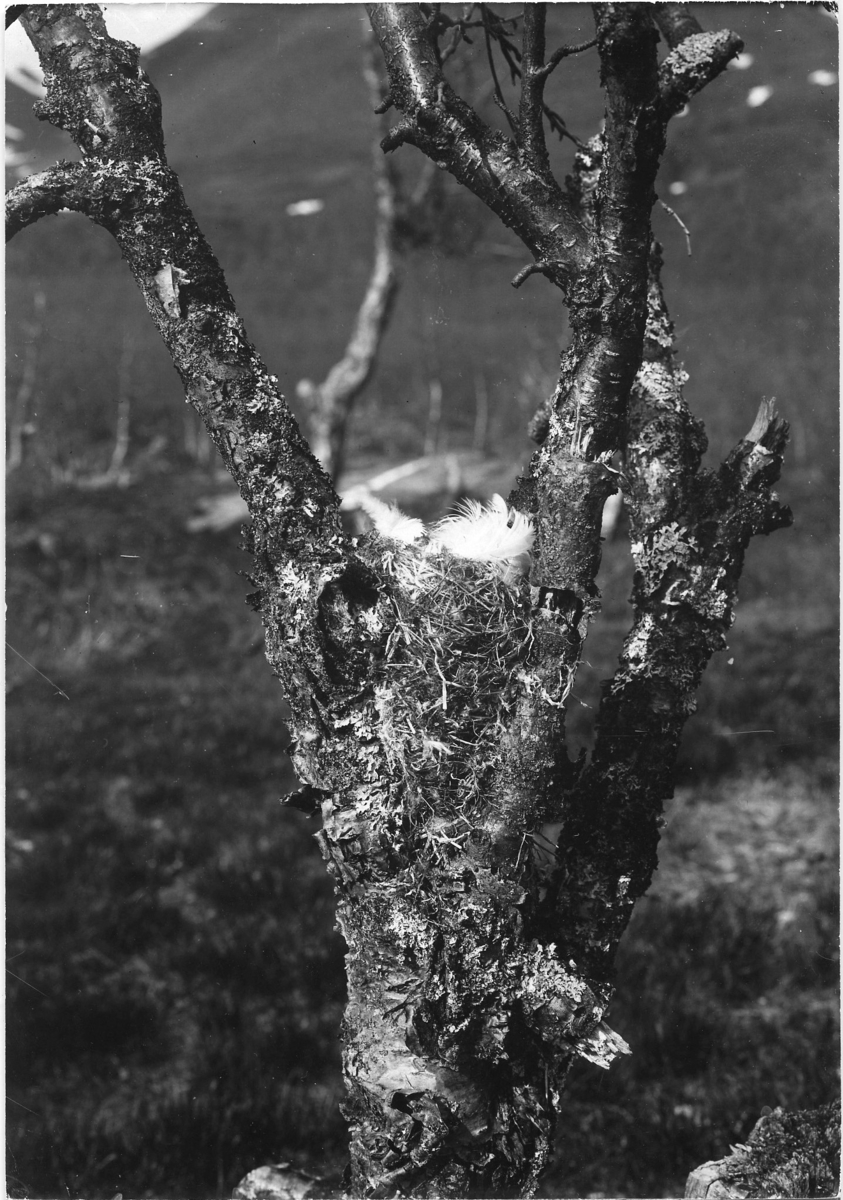 'Bergfink, bo i trädklyka, sett från sidan. :: :: Se även fotonr. 23.'