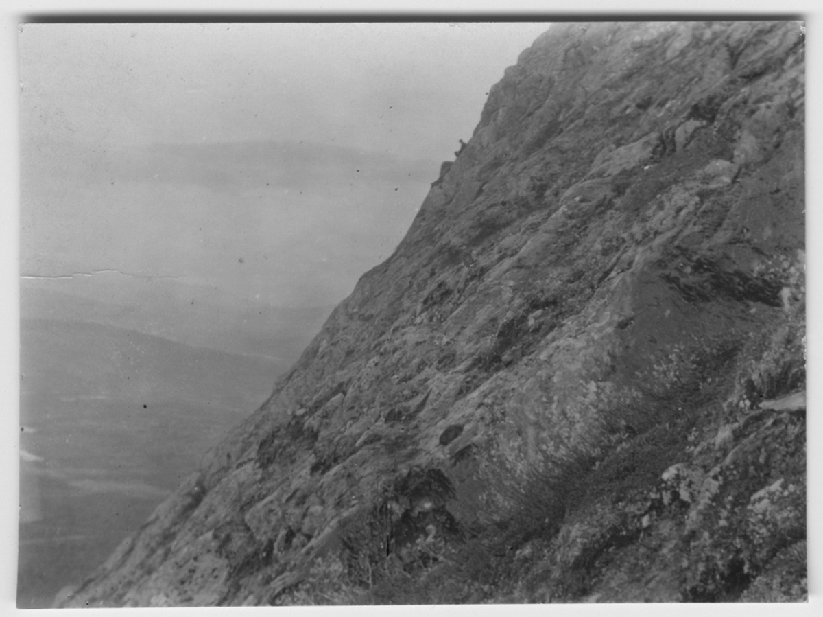 'Fjällvråk, vy med bergssluttning, bo med 5 ägg. Man sitter på huk bredvid boet. Fotograferat på avstånd. :: :: Se serie med fotonr. 795-815.'