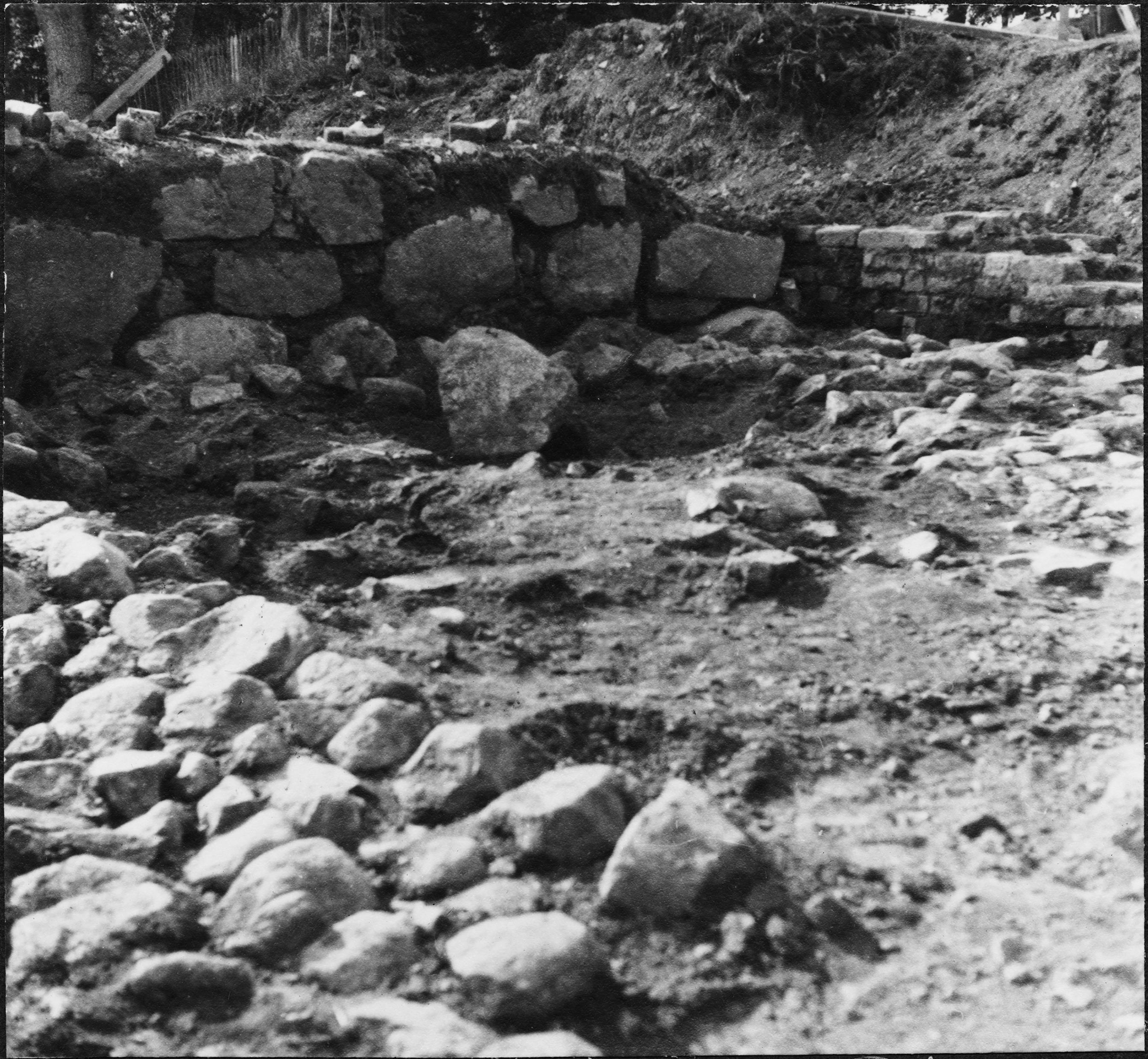 Den stenlagda platsen mellan hus A och hus C från söder.