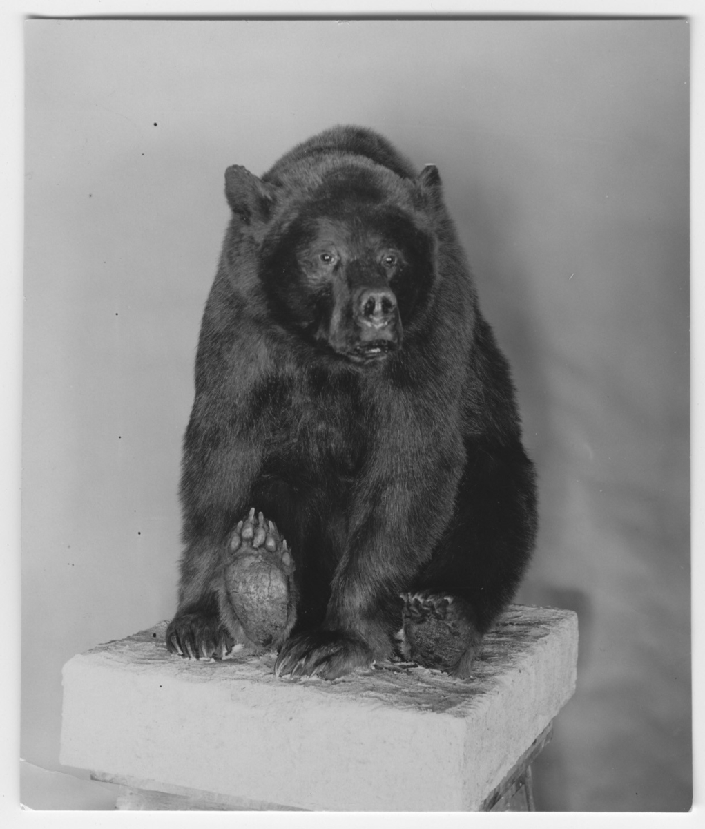 Björnen t.v. om ingången in till däggdjurssalen från vestibulen. Sedd framifrån. Se även fotonr. 1429.