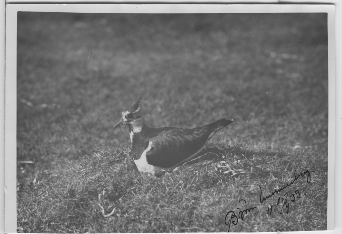 'Tofsvipa, liggande på gräsmark. :: :: Se även fotonr. 4489:2.'