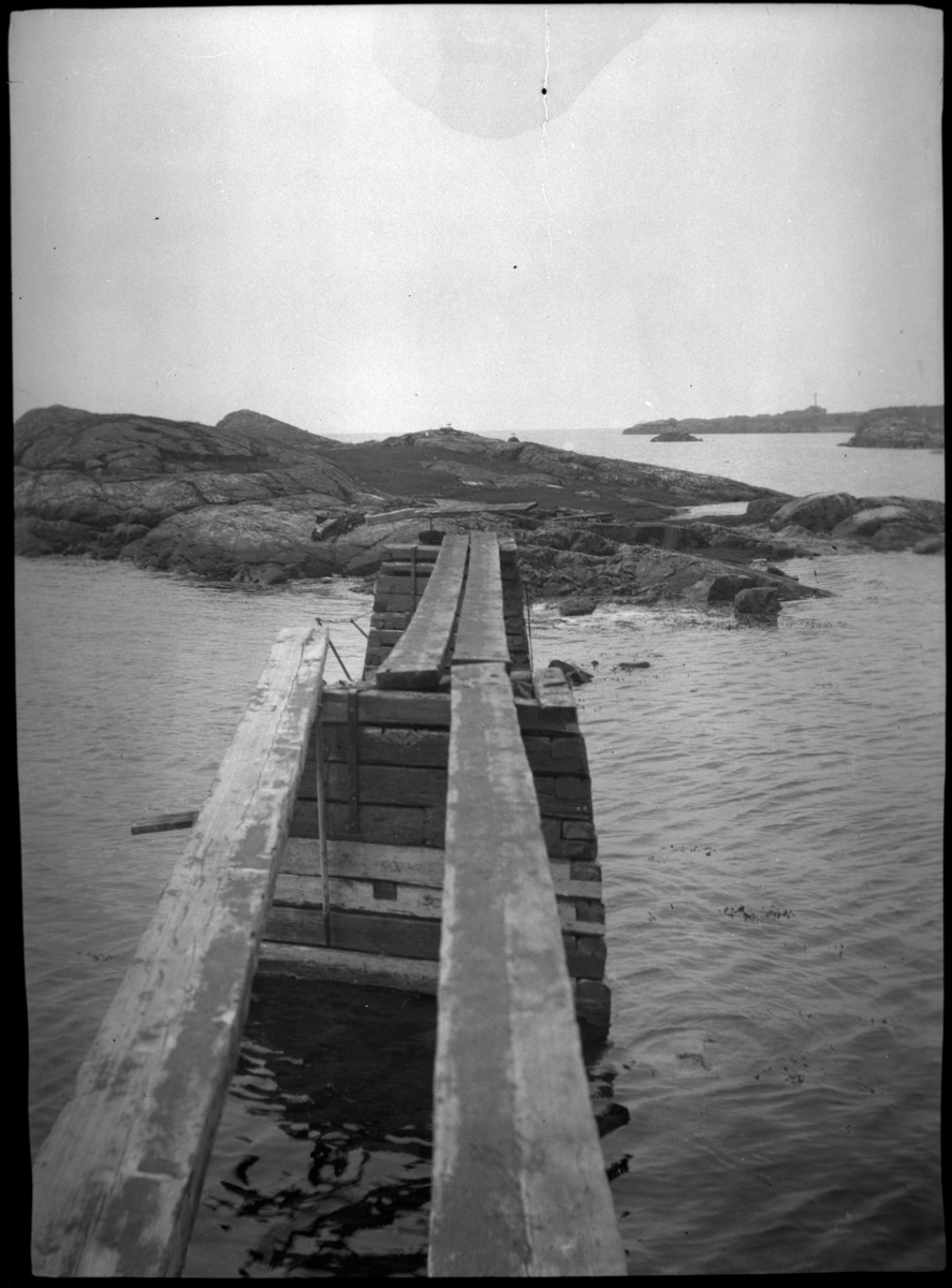 'Vy med brygga ut till berghäll i havet. :: :: Ingår i serie med fotonr. 862-871.'