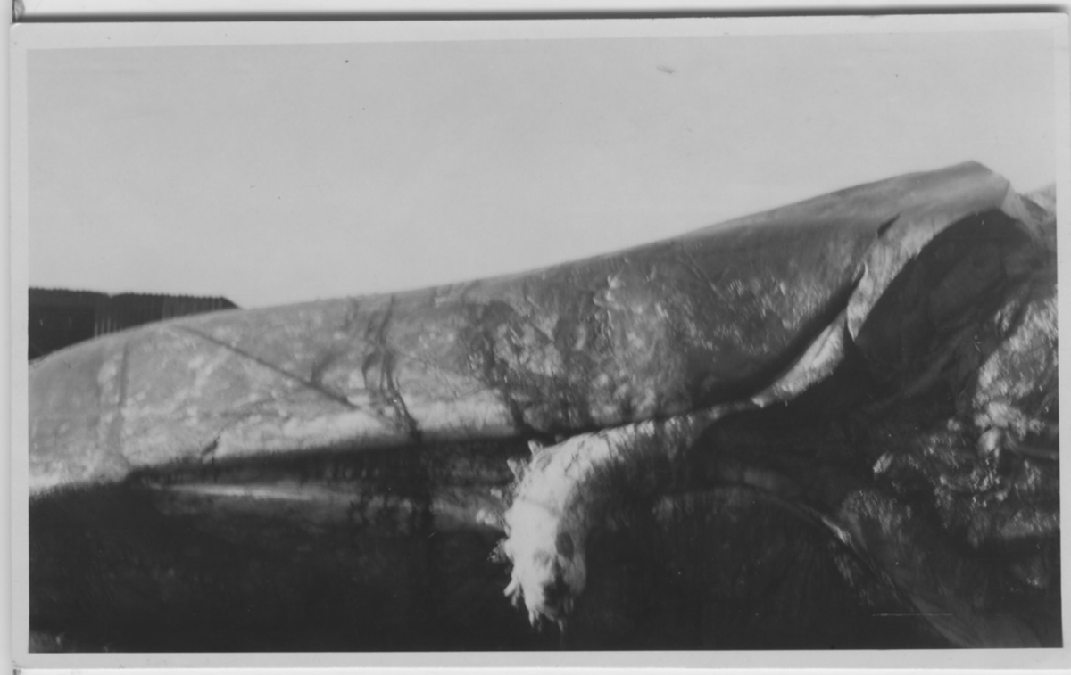 Huvud av spermval med krökt underkäke, närbild.
