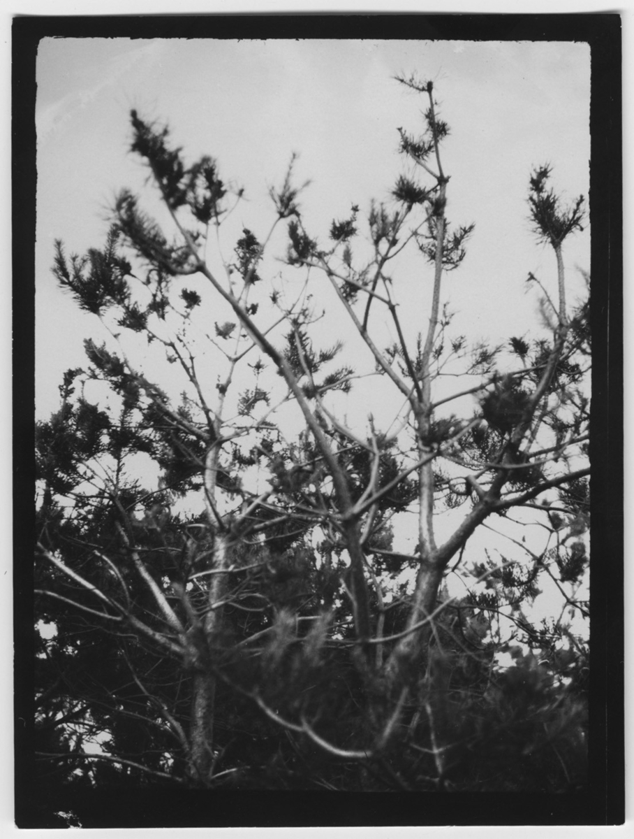 'Detaljbild av talltoppar. Text på baksidan: ''Tallar, skadade av tallskottvecklare.'' :: :: Ingår i serie med fotonr. 2347-2399.'