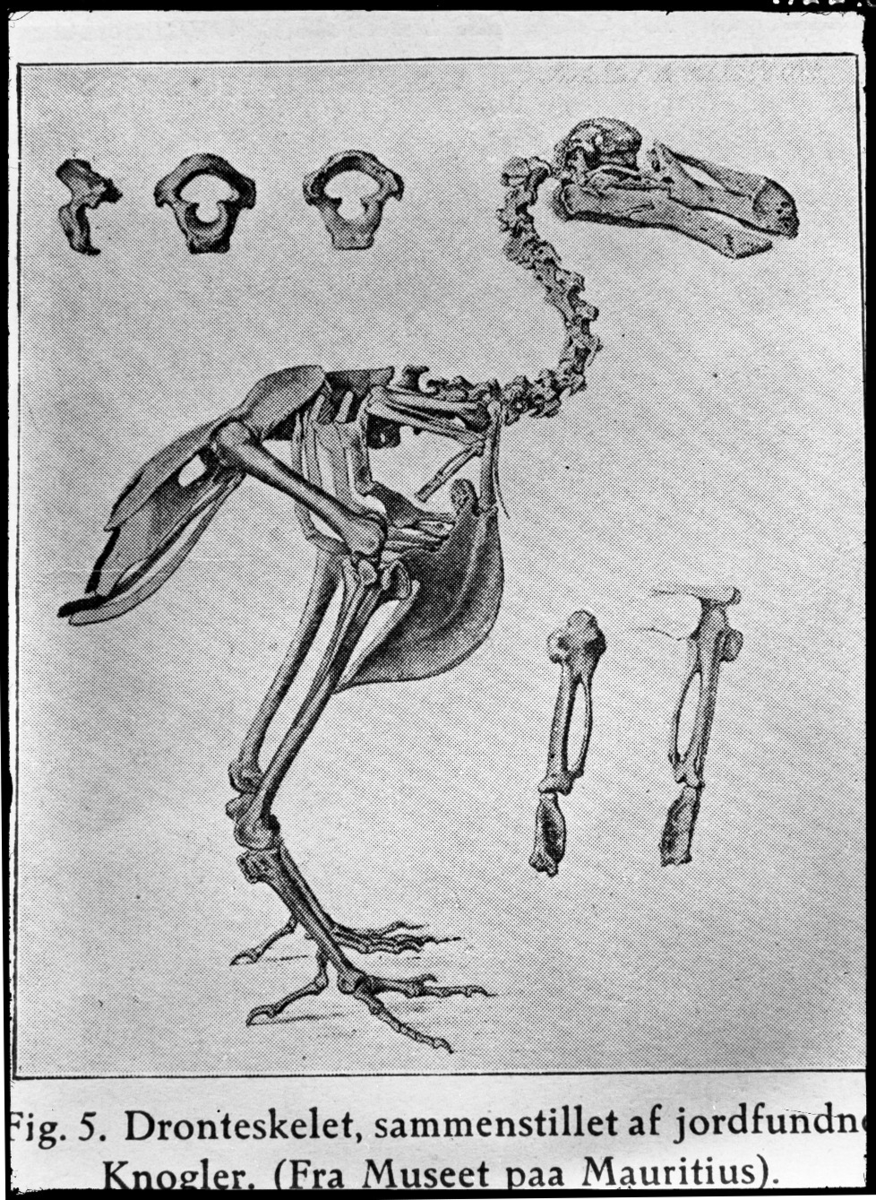 'Skelett av dront från museet i Port Louis (Mauritius). Bilden är en avfotografering av bild i bok. :: :: Ingår i serie med fotonr. 3218-3221.'