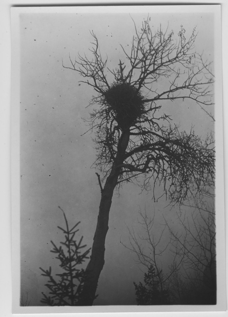 'Havsörnbo i en asp, grantopp nedanför. :: :: Se serie med fotonr. 3151-3200. Se även fotonr. 1771-1837.'