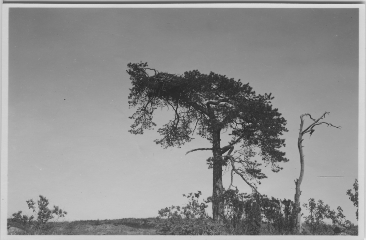 'Biologiska föreningens utfärd till Läckö och Stora Ekens skärgård. :: :: Fiskgjuse, vy med bo i tall. :: :: Se fotonr. 3242-3254, 3255, 3256-3259, 3260-3285 samt 3889-3894.'