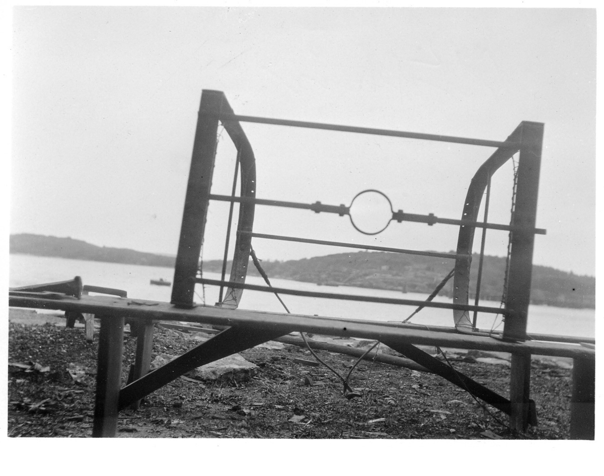 'Slädhåv på stranden. Vy ut mot hav. :: :: Ingår i serie med fotonr. 2782-2792 med bilder av fångstredskap för havsdjur som använts på bevakningsfartyget Skagerak.'
