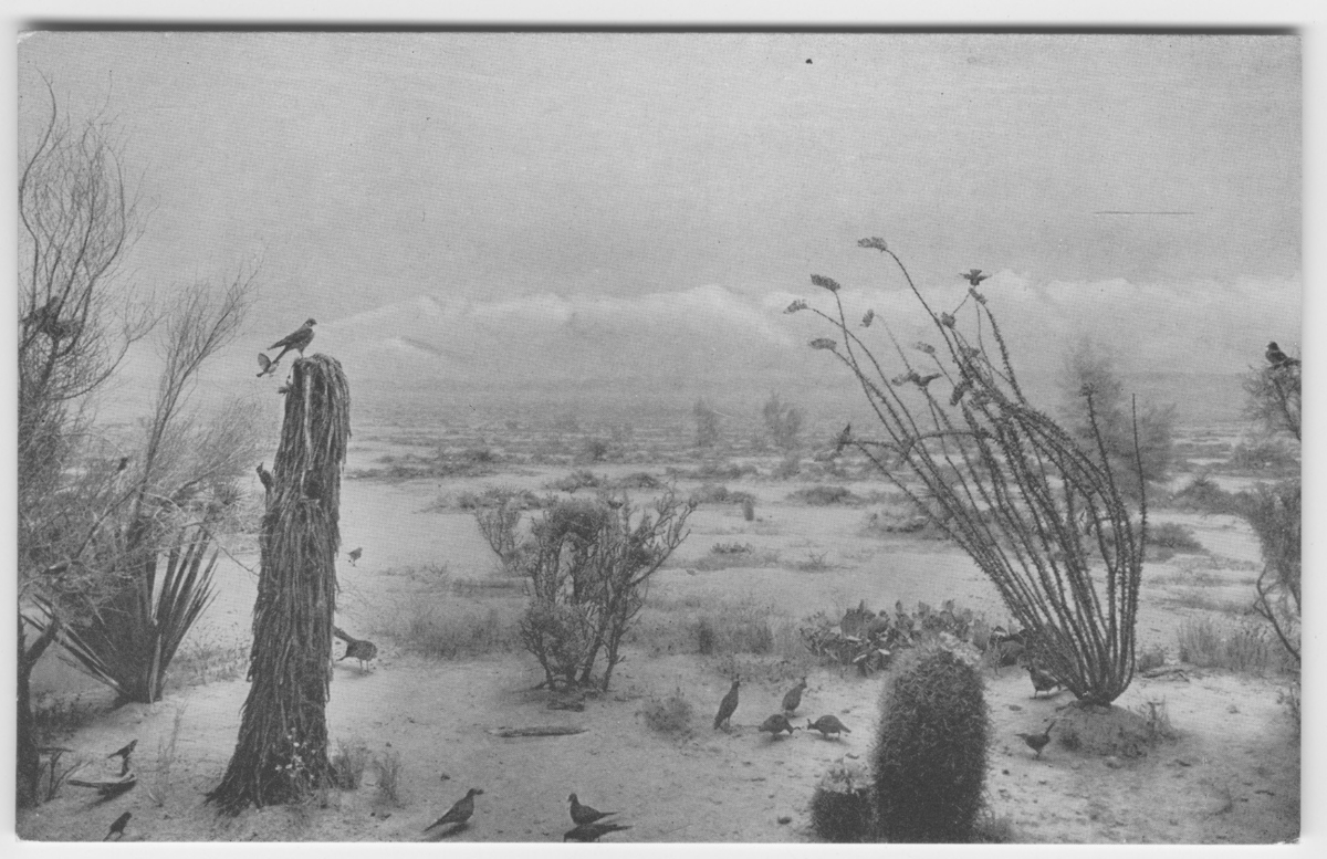 'Vy med fåglar i ökenmiljö. Text på baksidan: ''Desert bird group. Donated to the Academy by William B. Bourn'' :: :: Ingår i serie med fotonr. 2915-2929, se även fotonr 2914:2.'