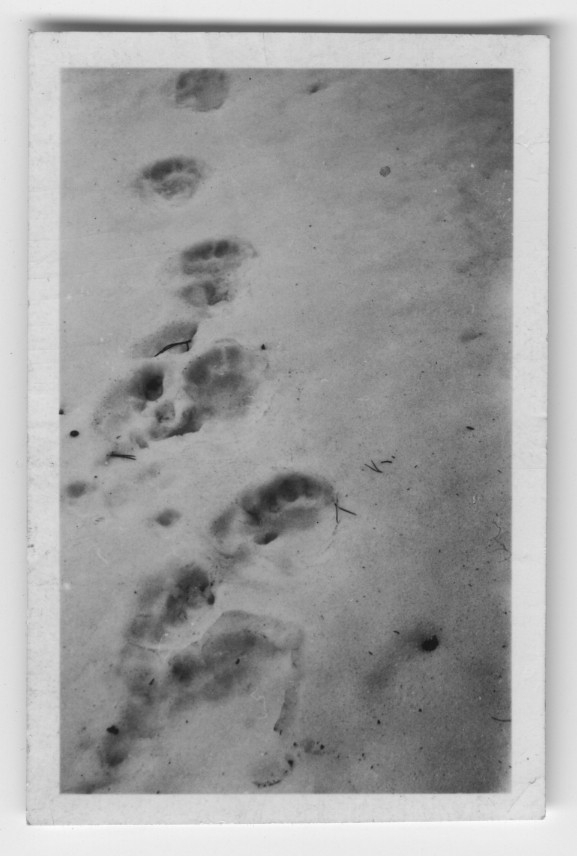 'Lospår vid Ströms egendom. Suddig bild av spår i snö. :: :: Även fotonr 3751 och 3766.'