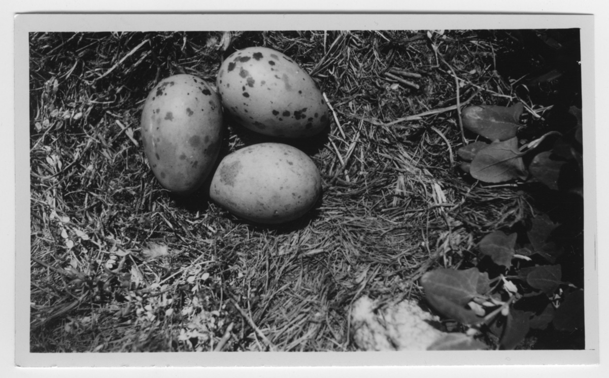 '''Gråtrutens bo med 3 st vackert tecknade ägg.'' :: :: Ingår i serie med fotonr. 4500:1-172.'