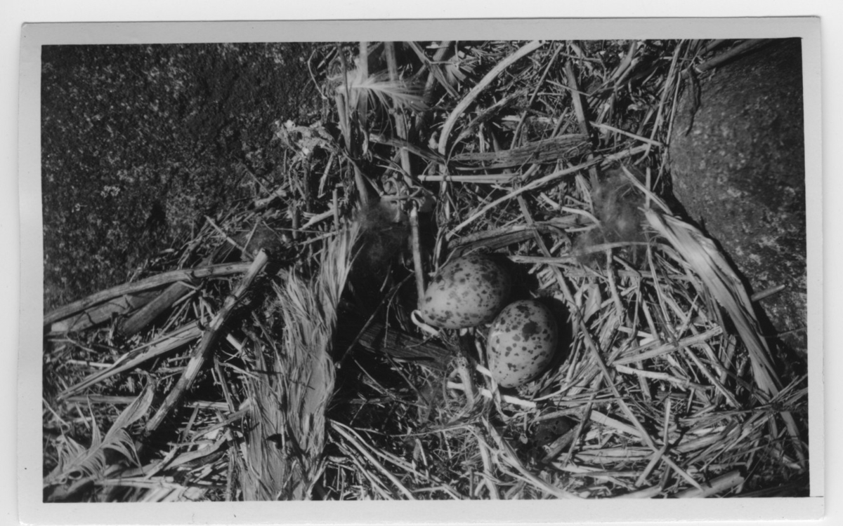 'Fisktärnans bo med 2 st vackert tecknade ägg mellan 2 stenar på Torrbeskär. :: :: Ingår i serie med fotonr. 4500:1-172.'