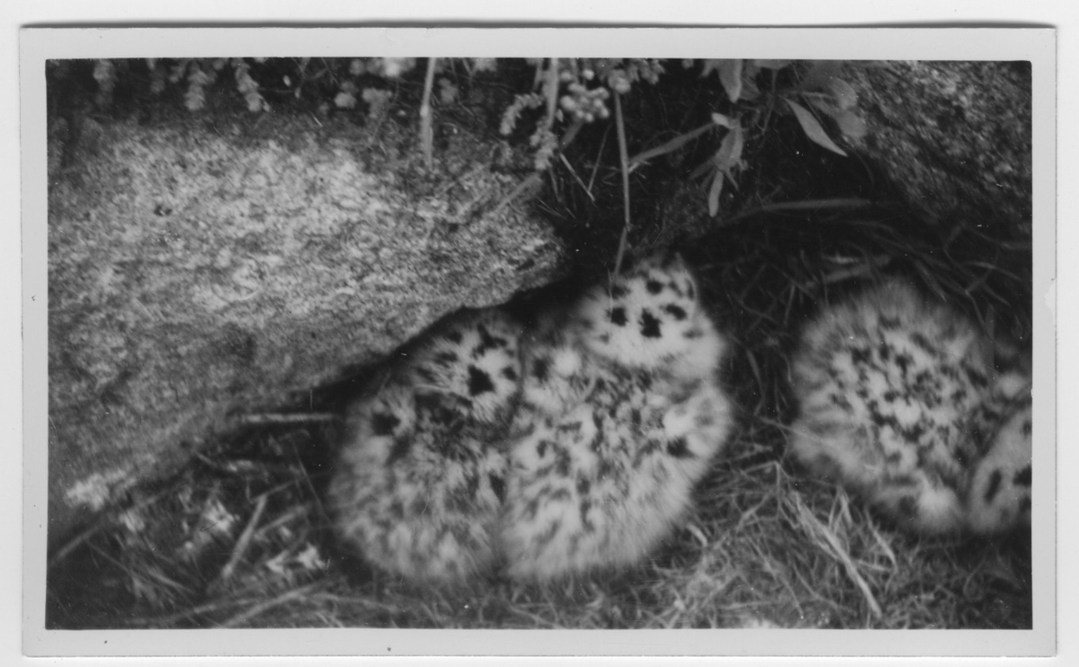 '2 st gråtrutsungar. :: :: Text på baksidan av fotot: '' 3 st dunungar av gråtrut.'' :: :: Ingår i serie med fotonr. 4500:1-172.'