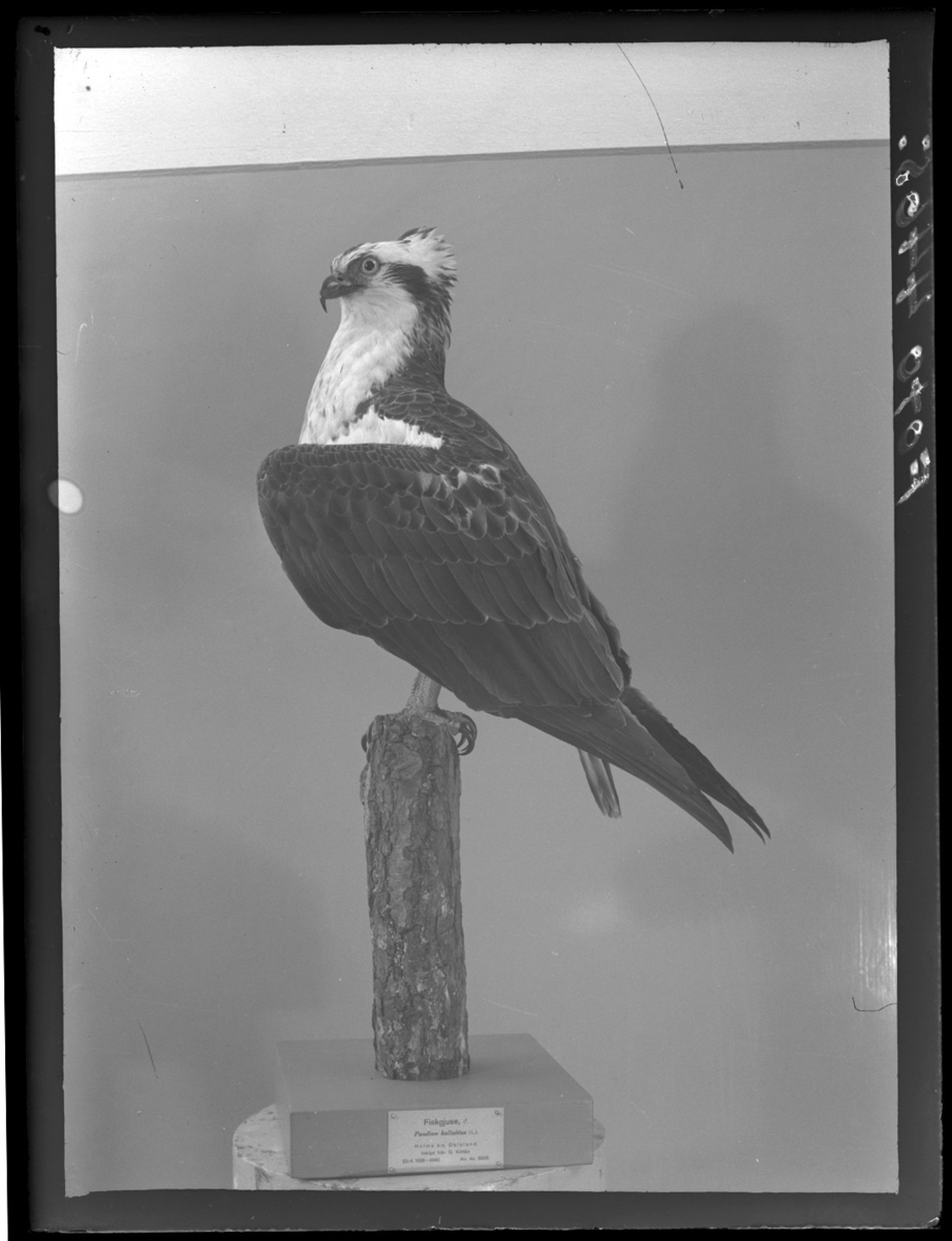 'Fiskgjuse, hane. Fynddatum: 1926-04-23. :: :: Montaget finns utställt i monterskåp nr. 230 i fågelgången på Göteborgs Naturhistoriska Museum (2008-02-11).'